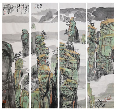 《襌境无垠》139X35cmX4
