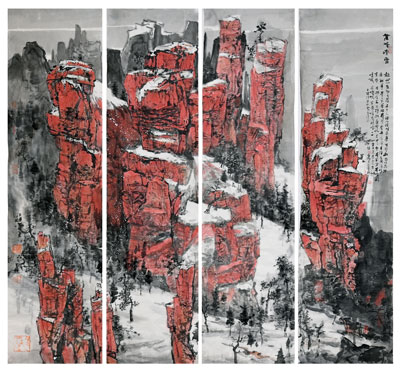 《襌境无垠》139X35cmX4